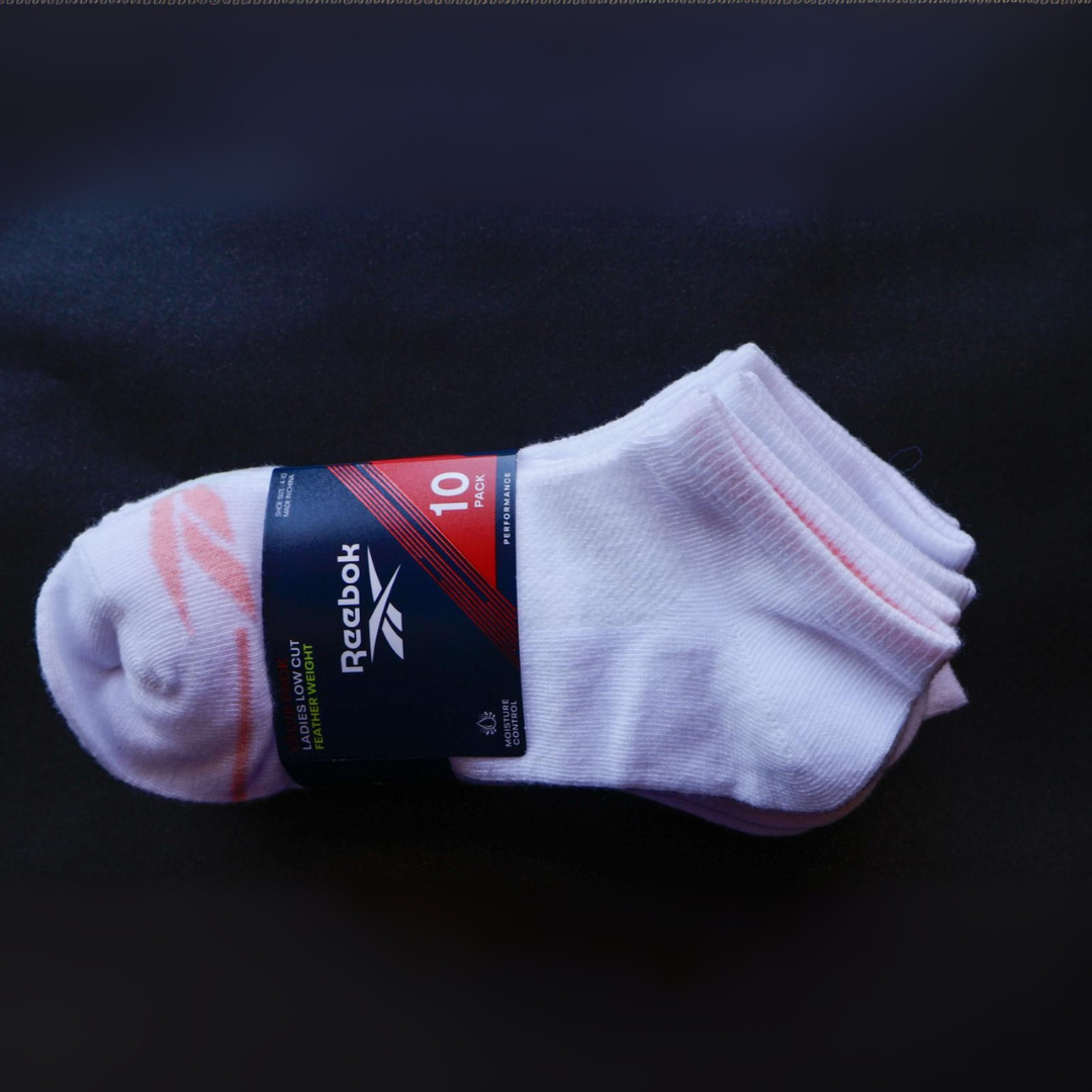 Paquete de 10 pares de medias de mujer en color blanco con detalles de colores, de la marca Reebox (Accesorios).